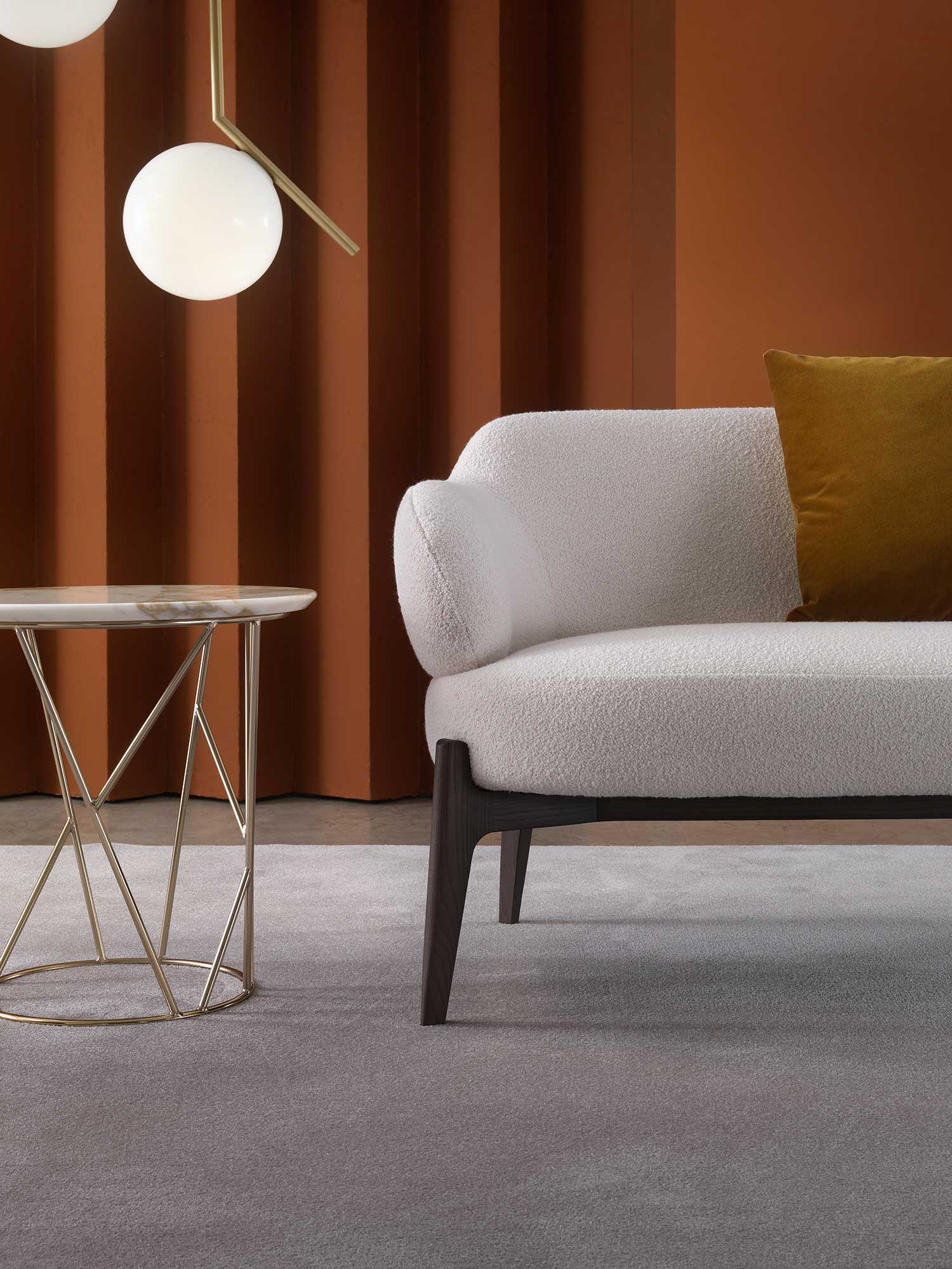 Sign is a family of enveloping armchairs and sofas that recalls the delicate, almost feminine curves of the 1970s.