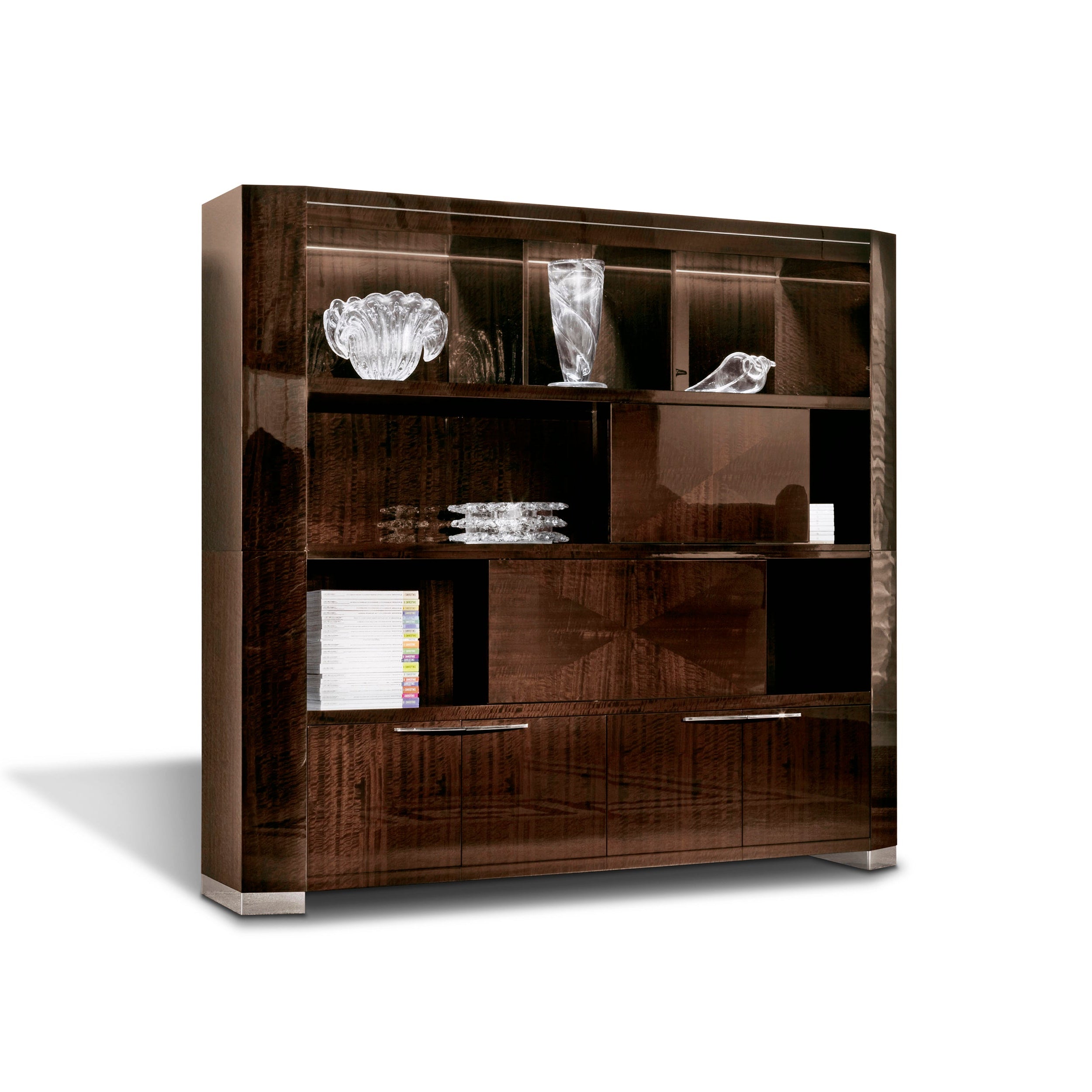 The Vogue bookcase is skilfully crafted in a stunning and rare species of European curly Eucalyptus timber with high gloss polyester finish.
