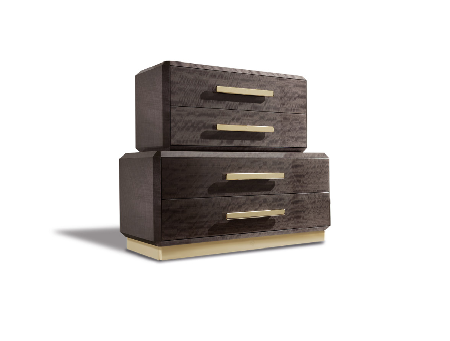 The Infinity collection, designed by Giorgio Soressi, is a gorgeous collaboration of early 20th century Art Deco vibes fused with refined, cutting-edge modern design. Crafted with a combination of special elements such as an exotic species of sought-after Makore Mahogany timber from tropical Africa, offering a unique sense of depth in the furniture. Light chrome plated GOLD finish is one of the star elements accentuating this luxurious collection.