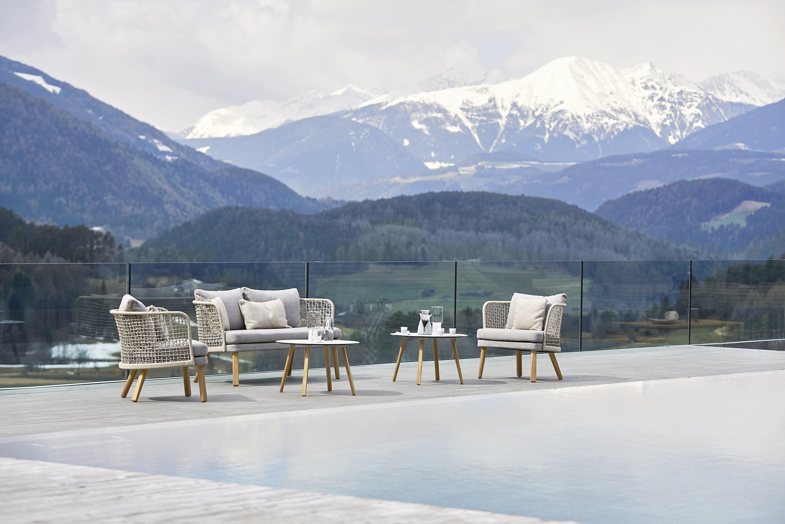 With its light and slender design, the Emma coffee table fits best in any outdoor environment from the garden to the terrace, from the veranda to the poolside. A precious complement that goes well with the seats of the homonymous collection, of which the particular tapered shape of the legs resumes.