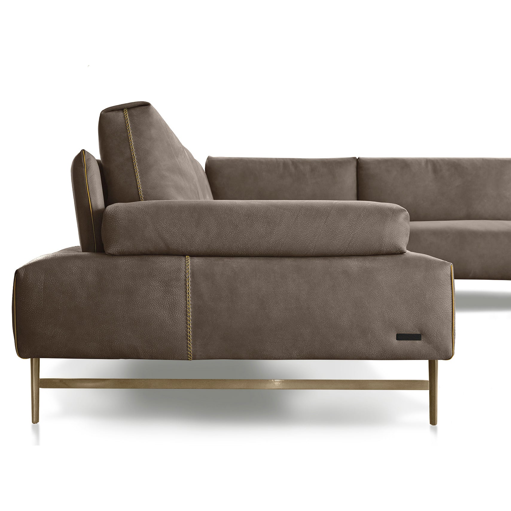 The main part of the coffee table is upholstered in your choice of leather grade and colour, with legs in chrome, dark chrome, burnished aluminium, burnished copper or painted metal finish.