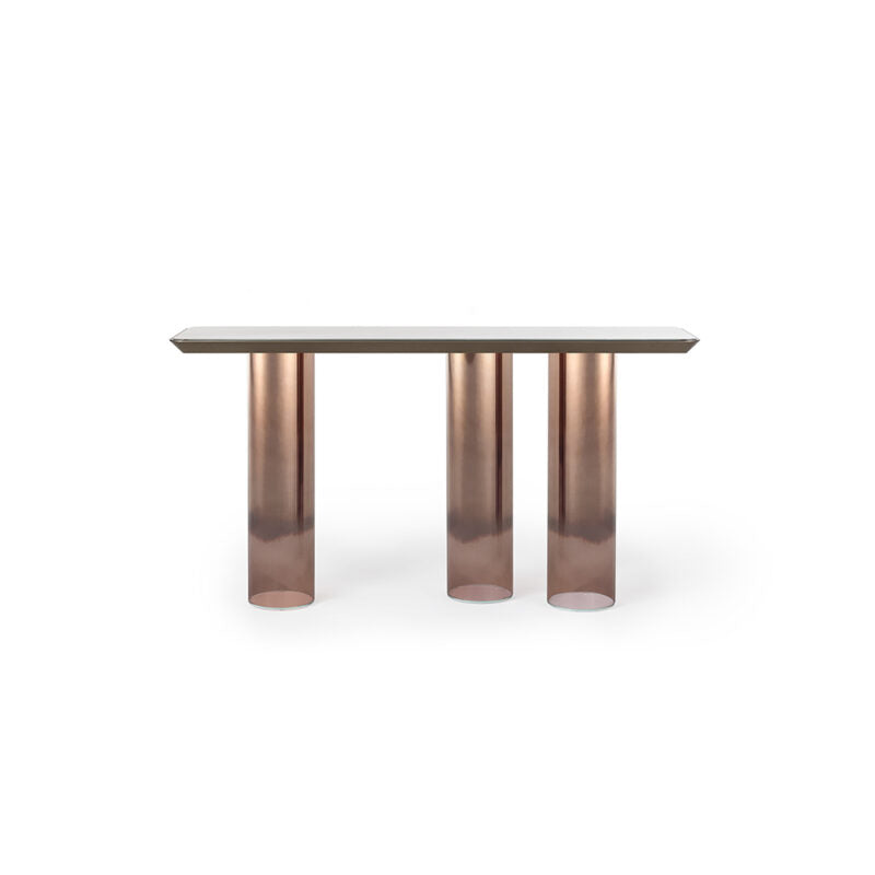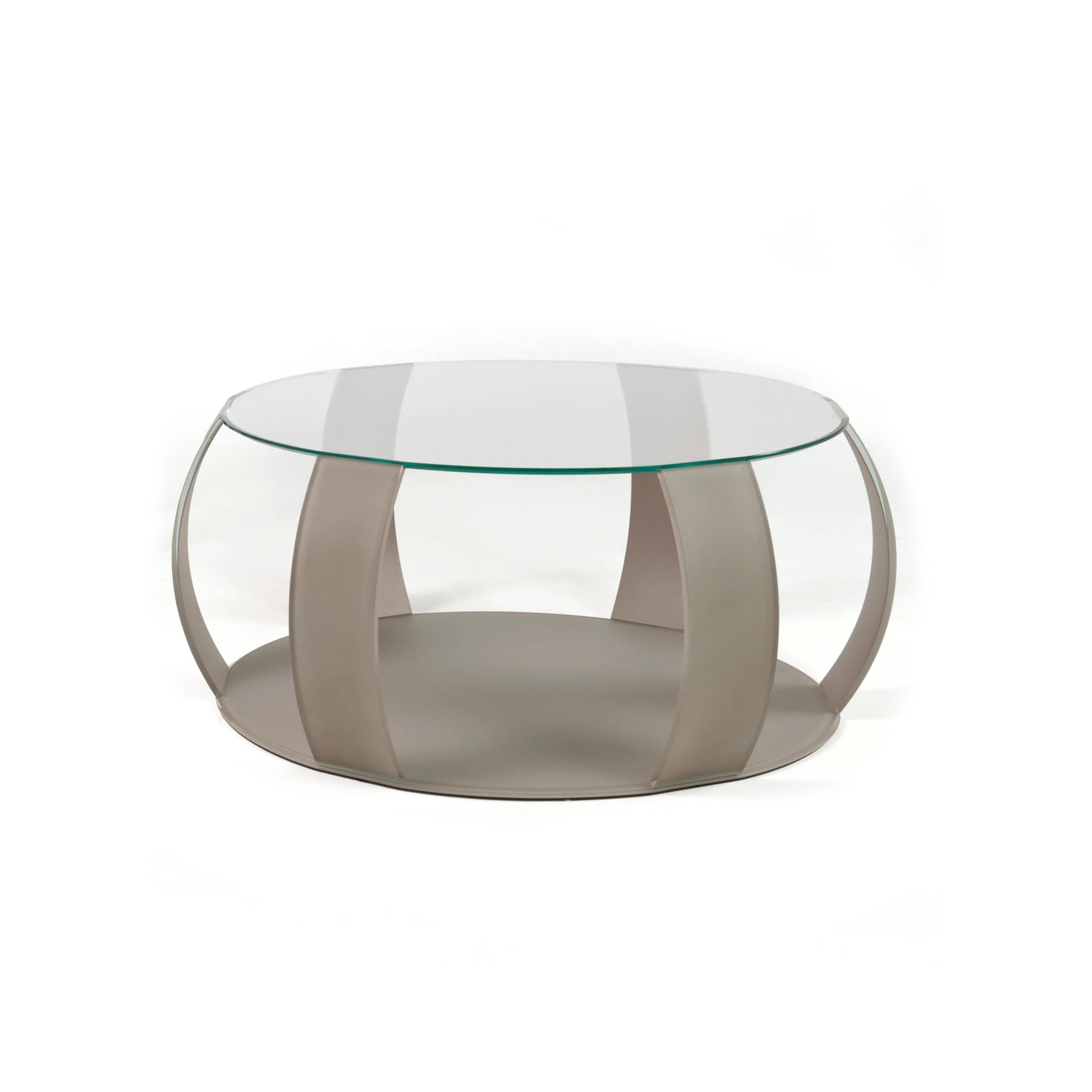Simplistic but still unique contemporary coffee table with base made of curved extra clear glass, and beautiful plinth in mirror glass.