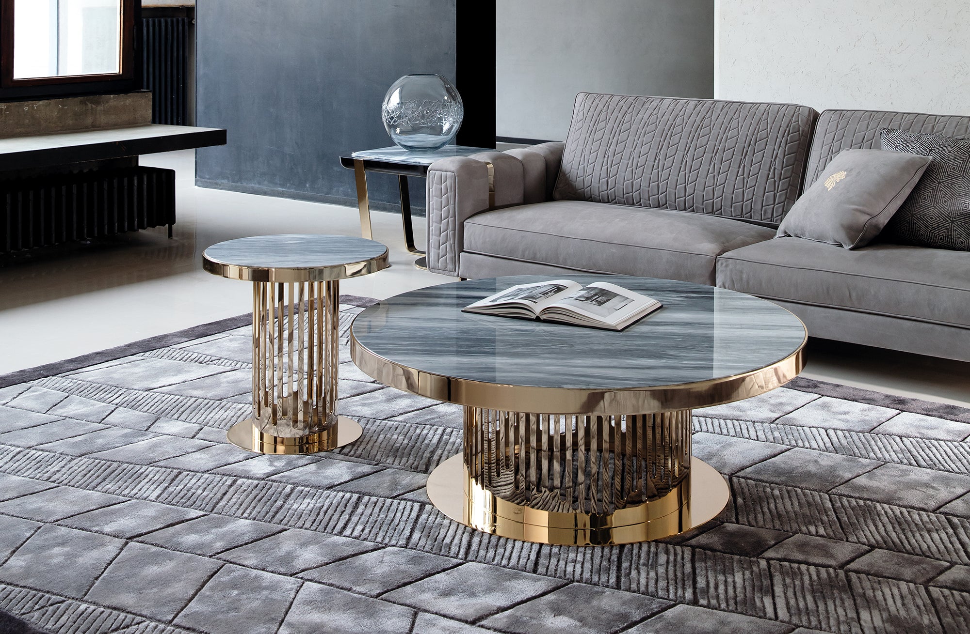 The Charisma Round Coffee Table is skilfully crafted with a combination of special elements such as a light chrome plated GOLD finish is one of the star elements accentuating this luxurious collection.