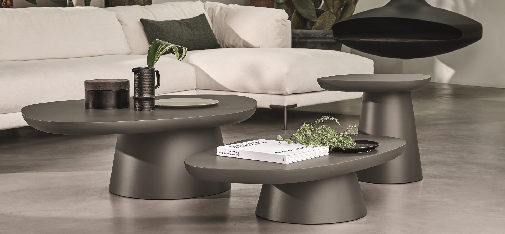 The harmonious Stone-in Coffee Table is a triptych of small tables designed to fit perfectly together. Available both for indoor and outdoor spaces.