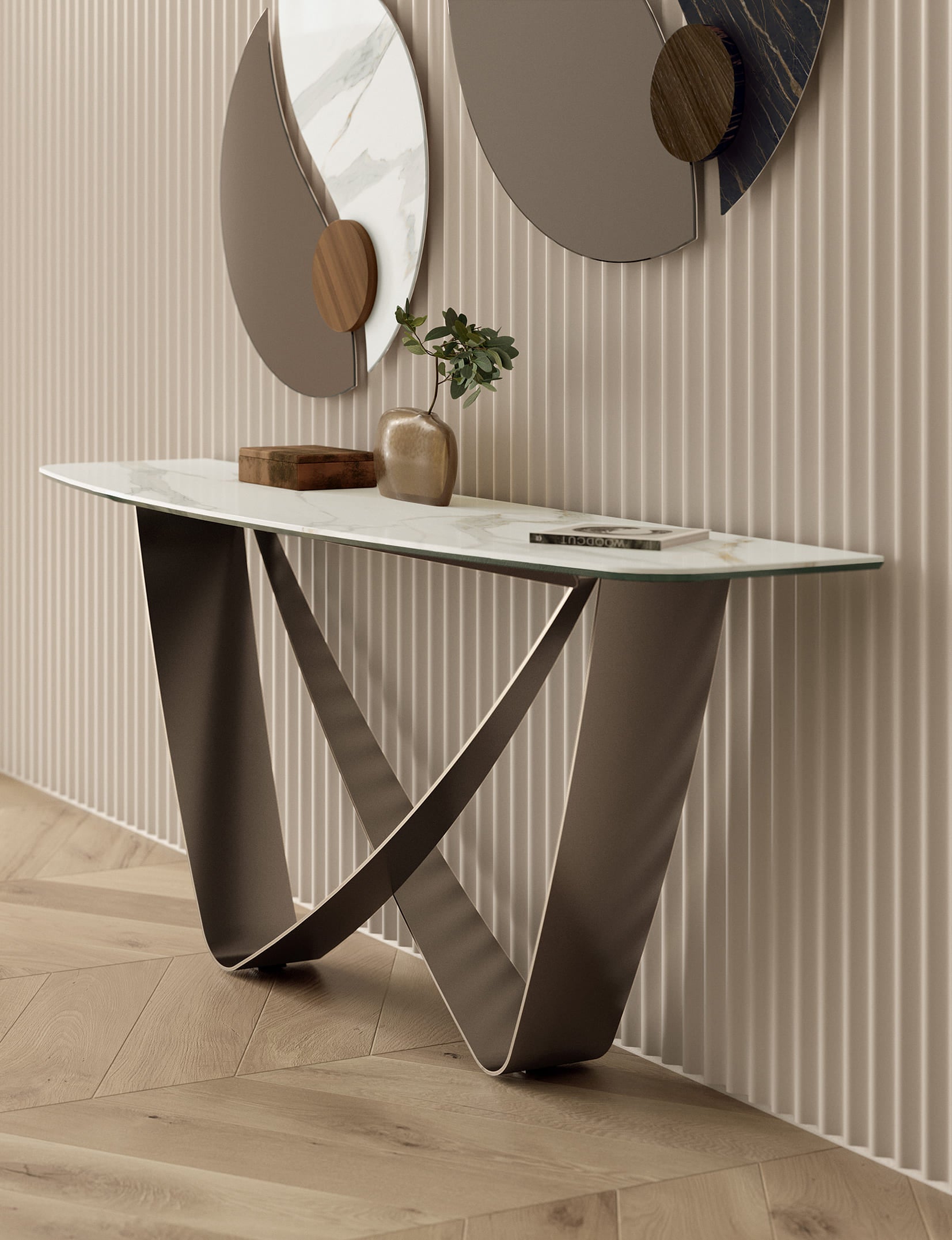 When you think of a console table, imagine not just a piece of furniture, but a sophisticated statement that can transform your interiors. Our Italian console tables are crafted with a sculptural presence that demands attention. They are essential elements for elevating entryways and living areas. With their combination of practicality and decorative charm, these tables can be used in hallways, living rooms and dining spaces, showcasing Italy's rich artisanal heritage alongside modern design ideas.