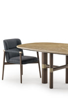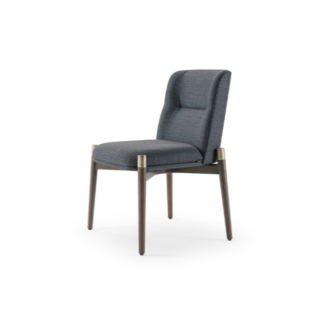 With an elegant design and clear lines of fashion, Atelier chairs – available in the version with or without armrest – feature a walnut wood structure enriched by brass metal details placed at the top of the legs. The version with upholstered armrests gives a high comfort level, perfect for relaxing while seated at the table.