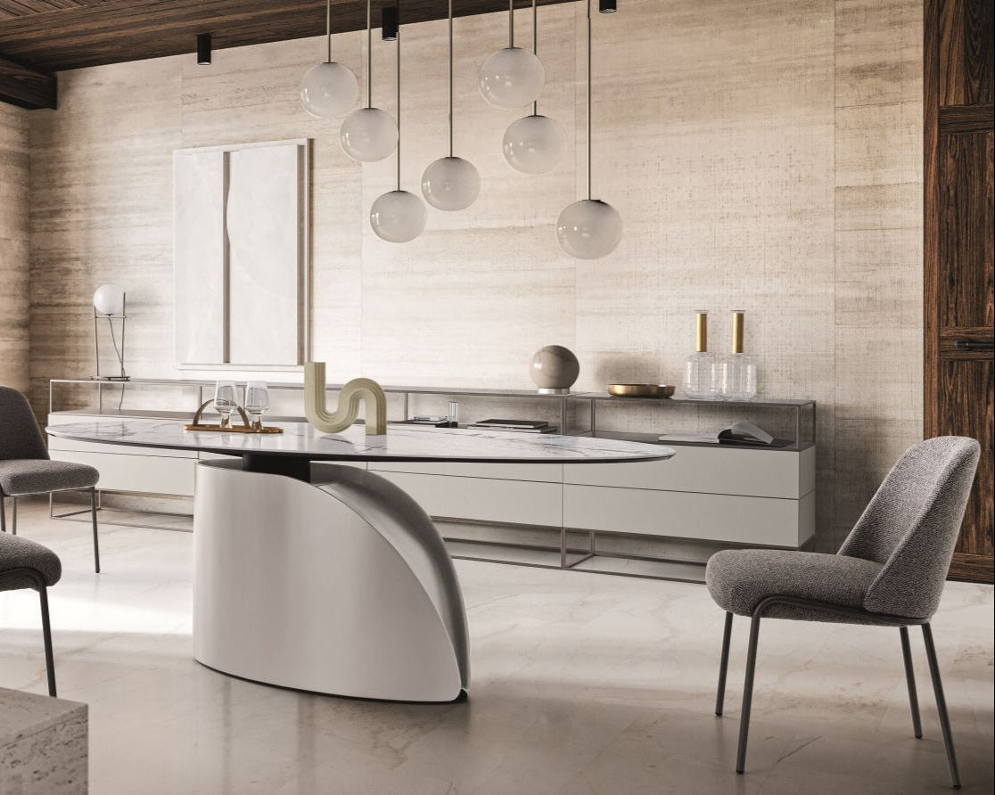 Central Park is both a table and a sculpture in which colors, lines, curves and slim panels combine to harmonies with the many original finishes available for the top. There is also the option to customize the base of the table with your choice of metal. Table comes in various size options. For custom size please enquire