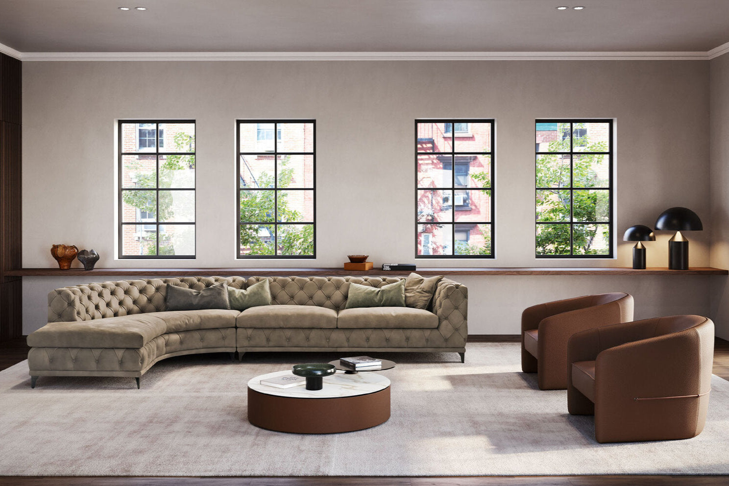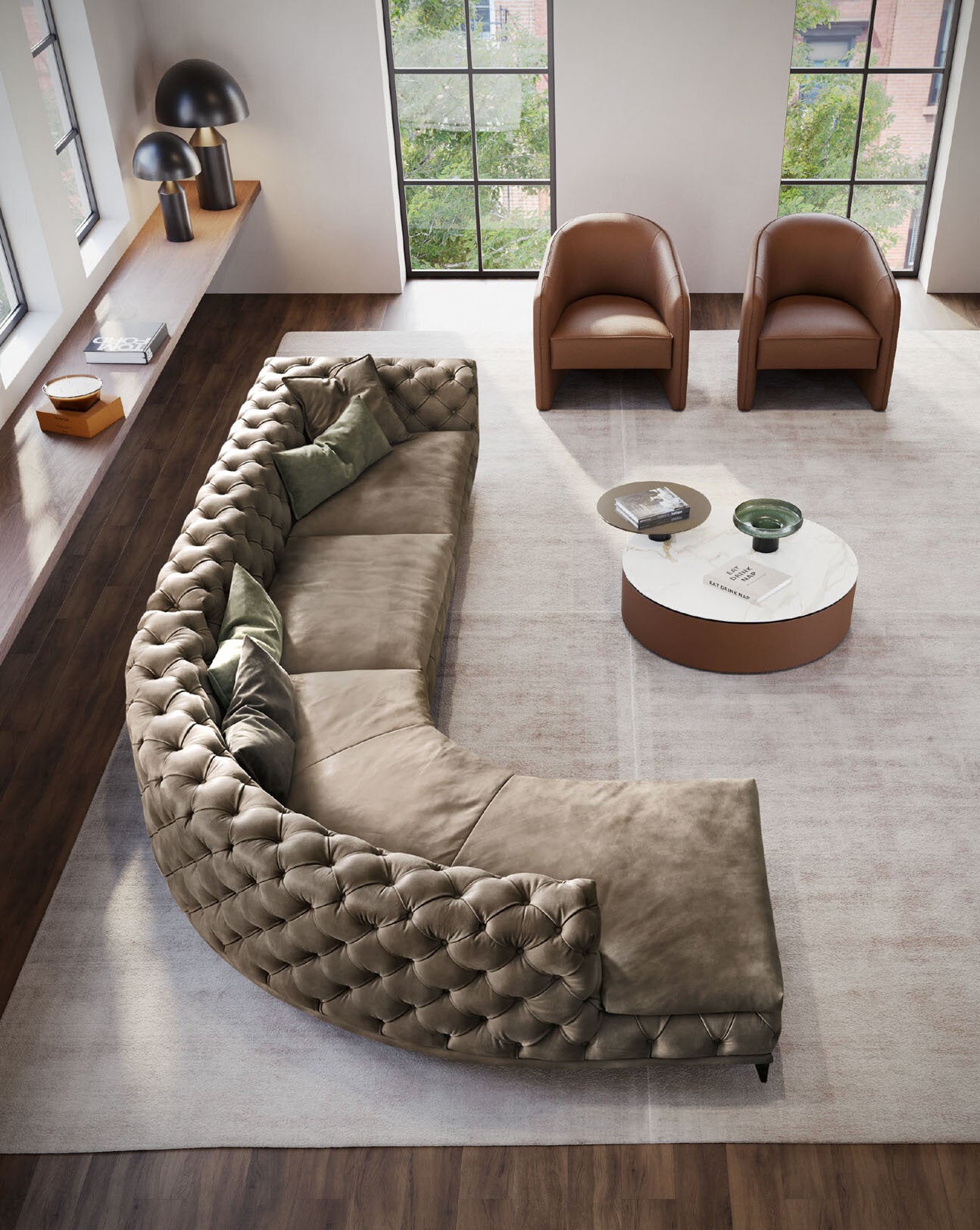 Indulge in a modern rendition of the old style Chesterfield, this stunning deep buttoned lounge is fully upholstered, with a wide selection of Italian leather grades, colours and fabrics. Nabuk leather is the most sought after, luxurious leather currently available on the market.