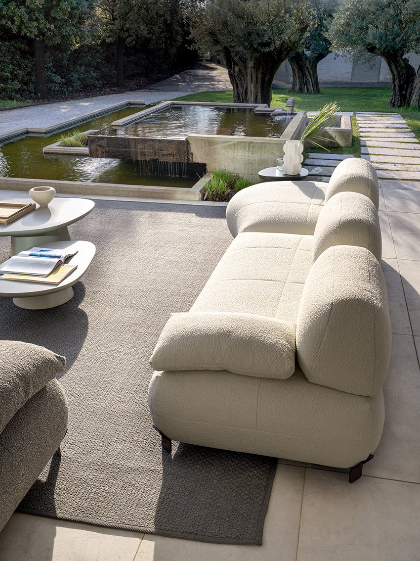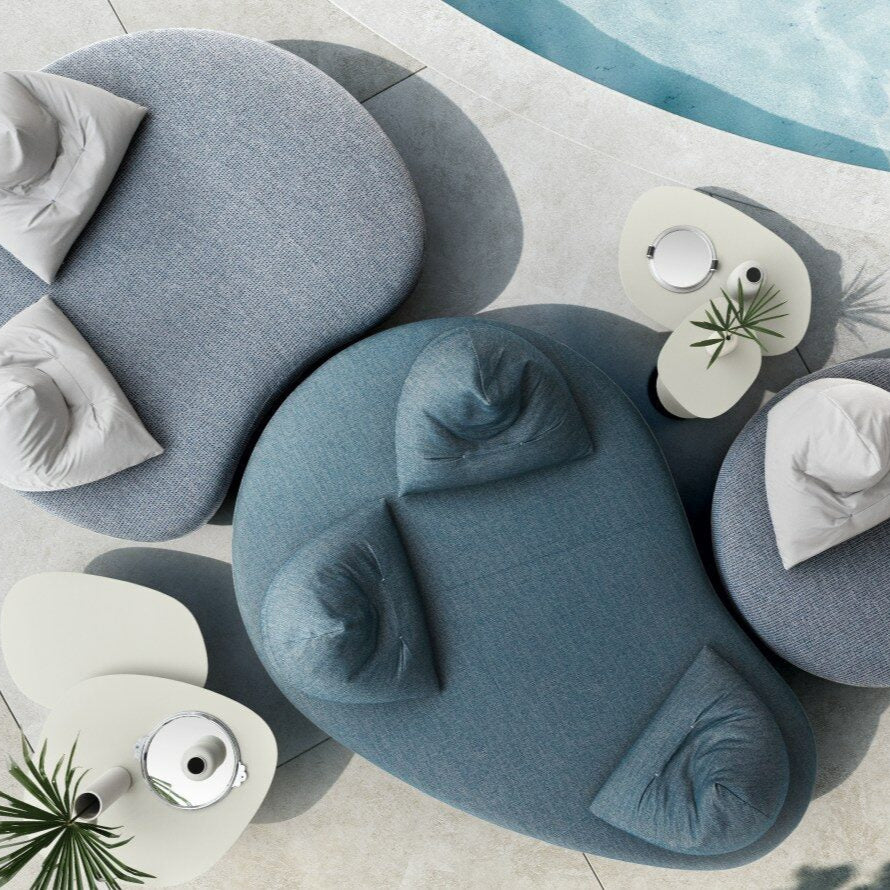 Design inspired by the ocean waves. Its organic forms recall the fluidity of the waves, while its rounded details create islands of relaxation. Various elements can be used to create larger designs or more compact configurations. The single seats are complemented with islands with round integrated chaise longue, turning the concept of an innovative and contemporary outdoor space into reality.