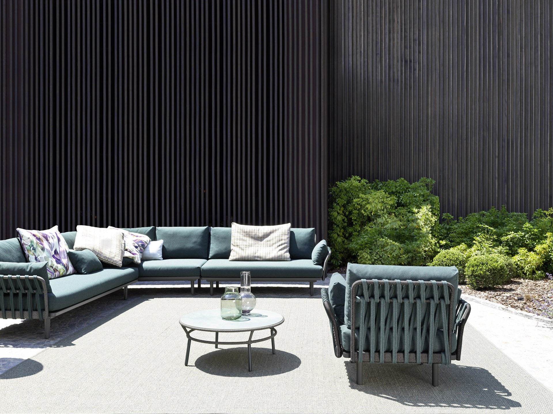 The new Emma Cross Armchair, a piece of furniture whose shapes are similar to the ones in the modular sofa coming from the same collection, is the perfect companion to enjoy an afternoon outdoors.