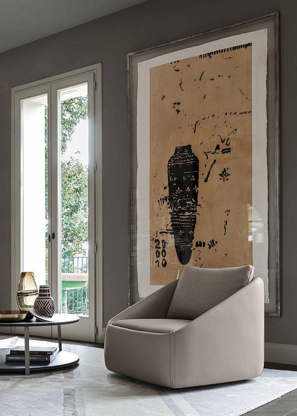 The act of transforming a simple shape into comfortable seating by removing some of its aesthetic parts makes Bend a recognisable yet unobtrusive object. Its soft shapes connect the bold, square volumes of its vertical surfaces. But Bend also displays sartorial details: the corners are made of vertical fabric or leather strips sewn on with double hems.