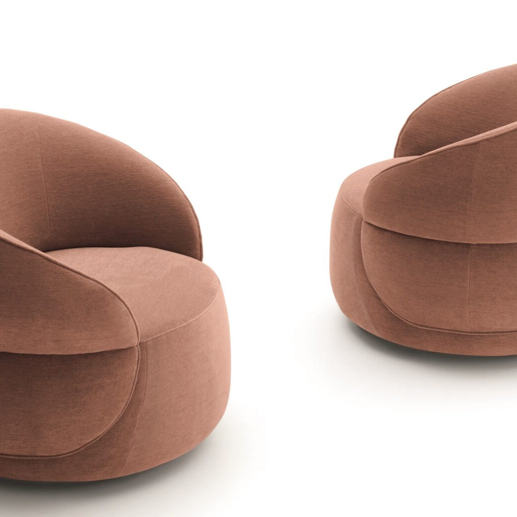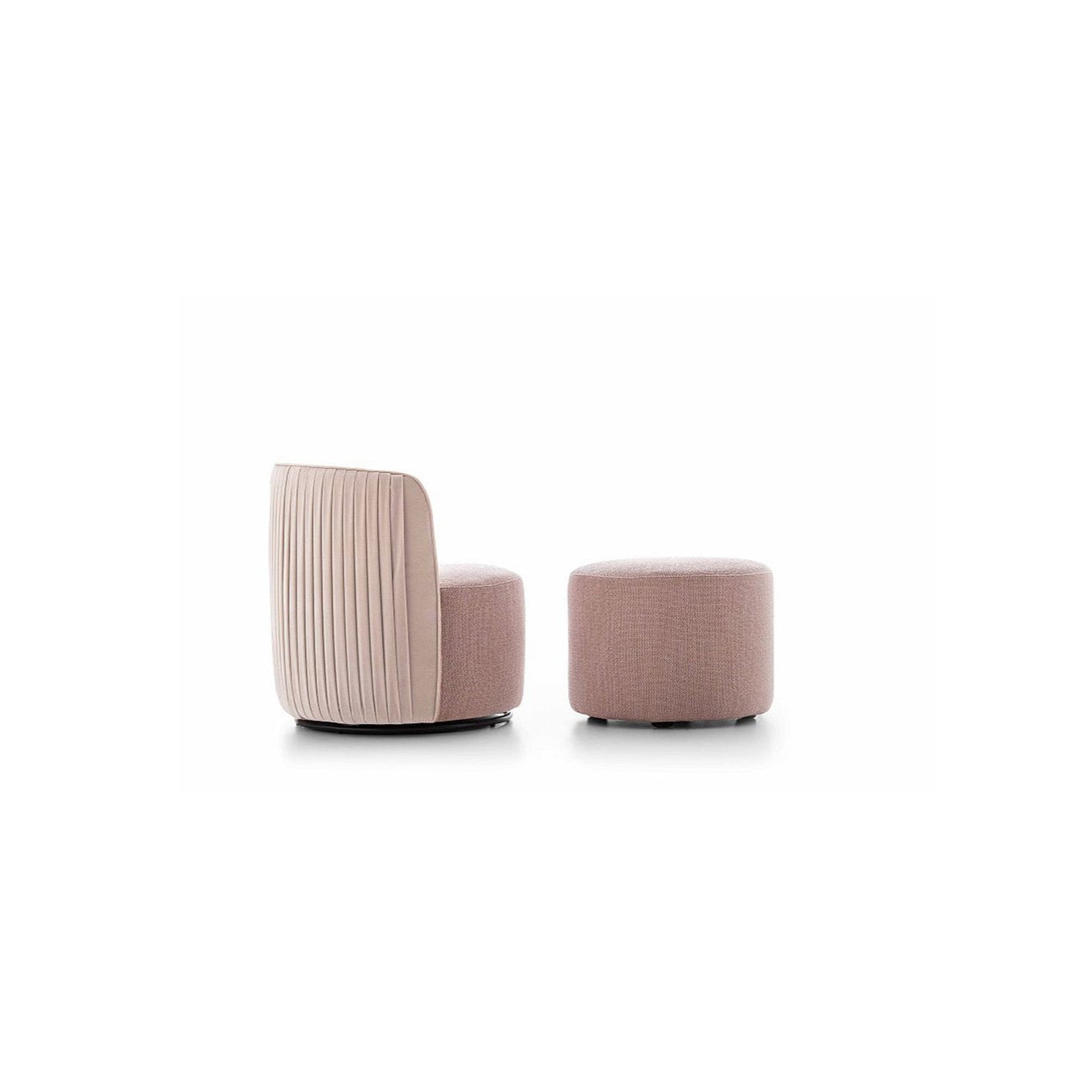 The soft, rounded shapes of this armchair are embellished behind the backrest by elegant and refined pleating, reminiscent of bygone days. An Art Decò yet contemporary armchair that perfectly furnishes any type of setting.