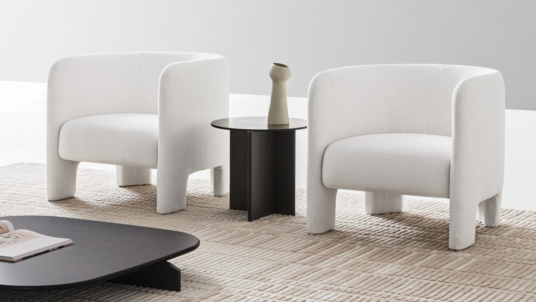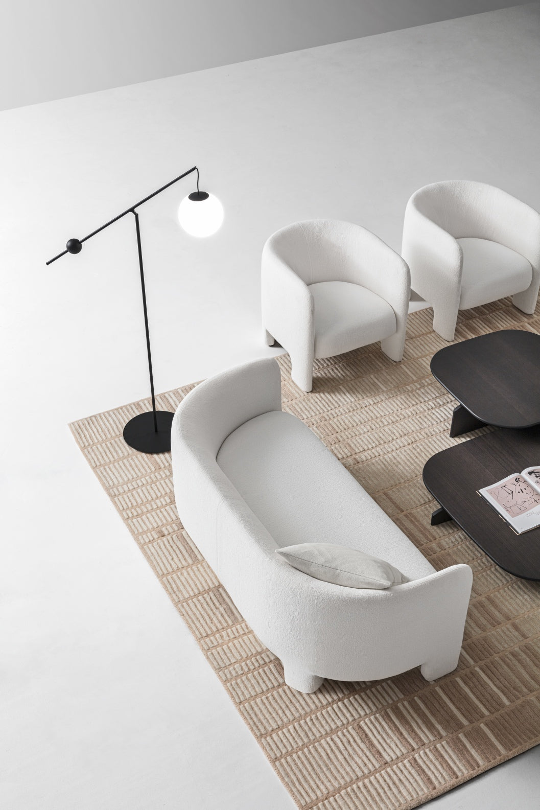 The Cali collection has been extended with a family of upholstered products featuring delightful sinuous and enveloping silhouettes. The design of the tub chair and sofas – two- or three-seater – stands out with a remarkable sense of stability which is emphasised by the solid legs.