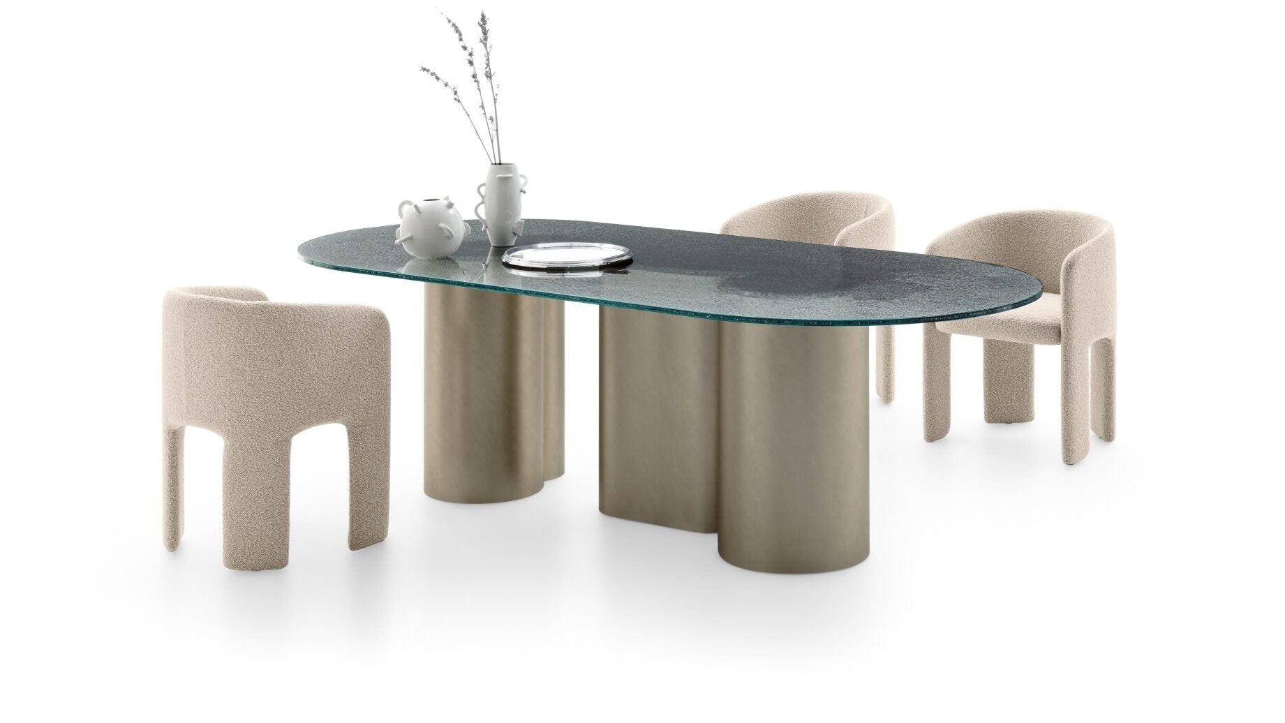 In your choice of marble, glass or wooden top with structure in anthracite, silk grey, amber, or pewter colour.