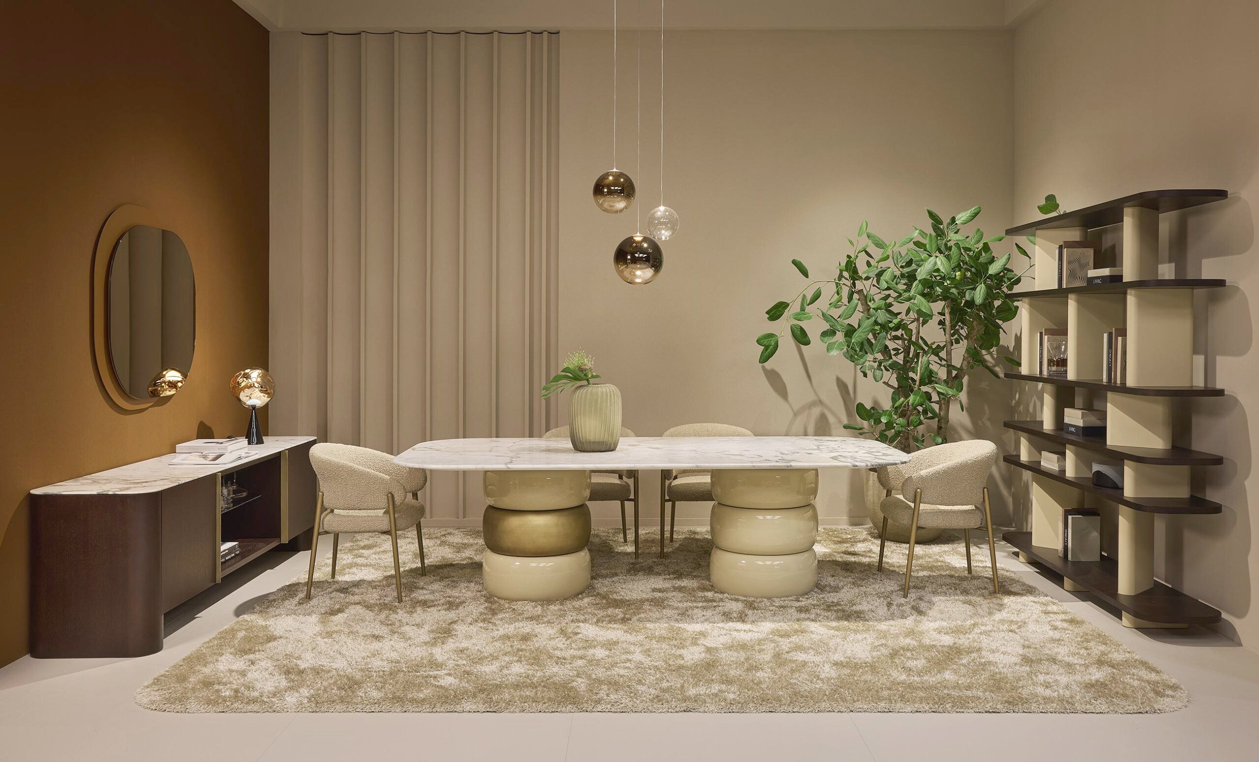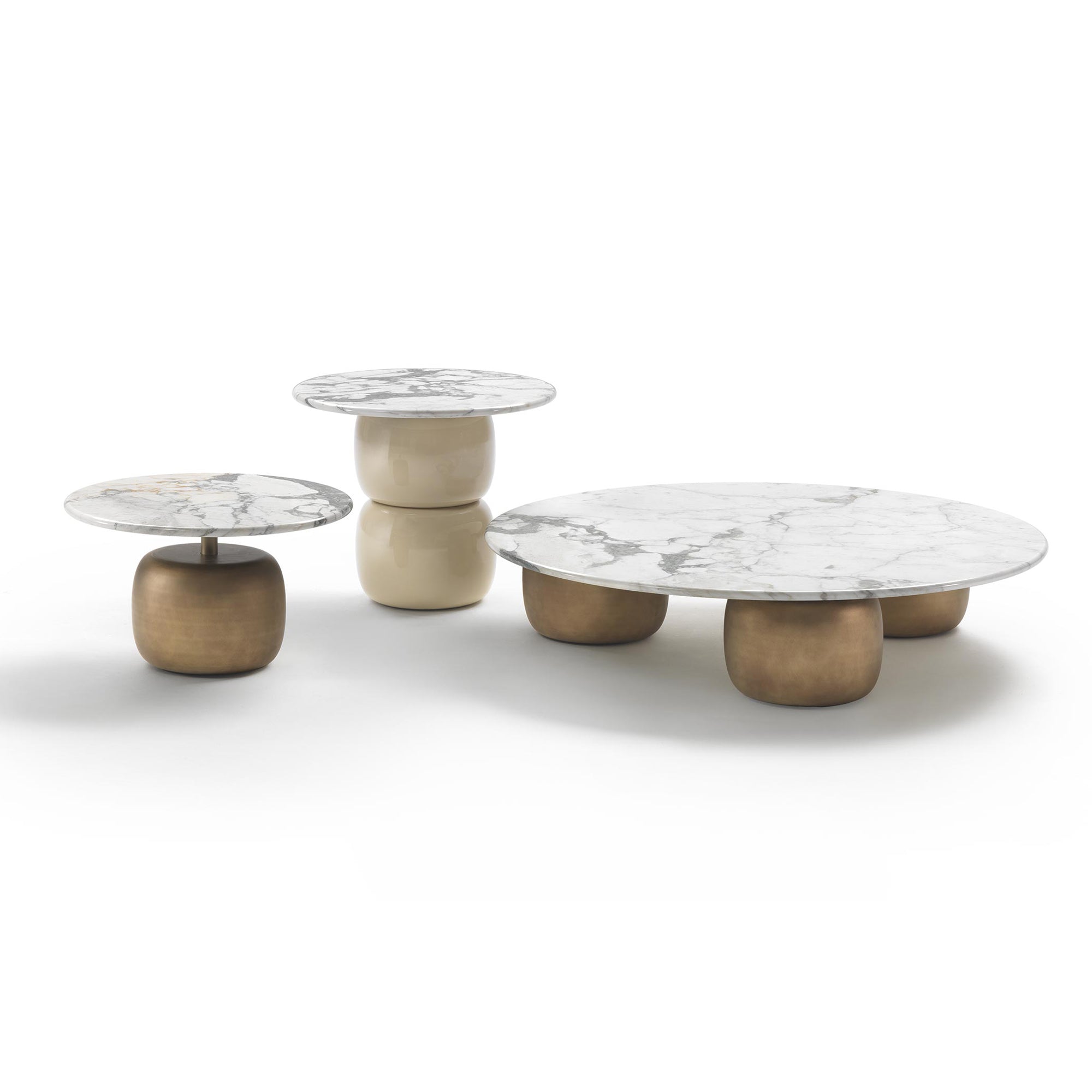 The table tops are available in 16 different types of marble. Each individual base can be personalised with a choice of gloss or matt lacquer finishes. The versatility of the Lua family is further enhanced by the possibility of customising the tables. The tables can be adapted and interpreted according to design requirements, allowing for individual proposals of great aesthetic relevance. This makes Lua tables suitable for a wide variety of design environments, including high-end contract spaces where they can be the real star.