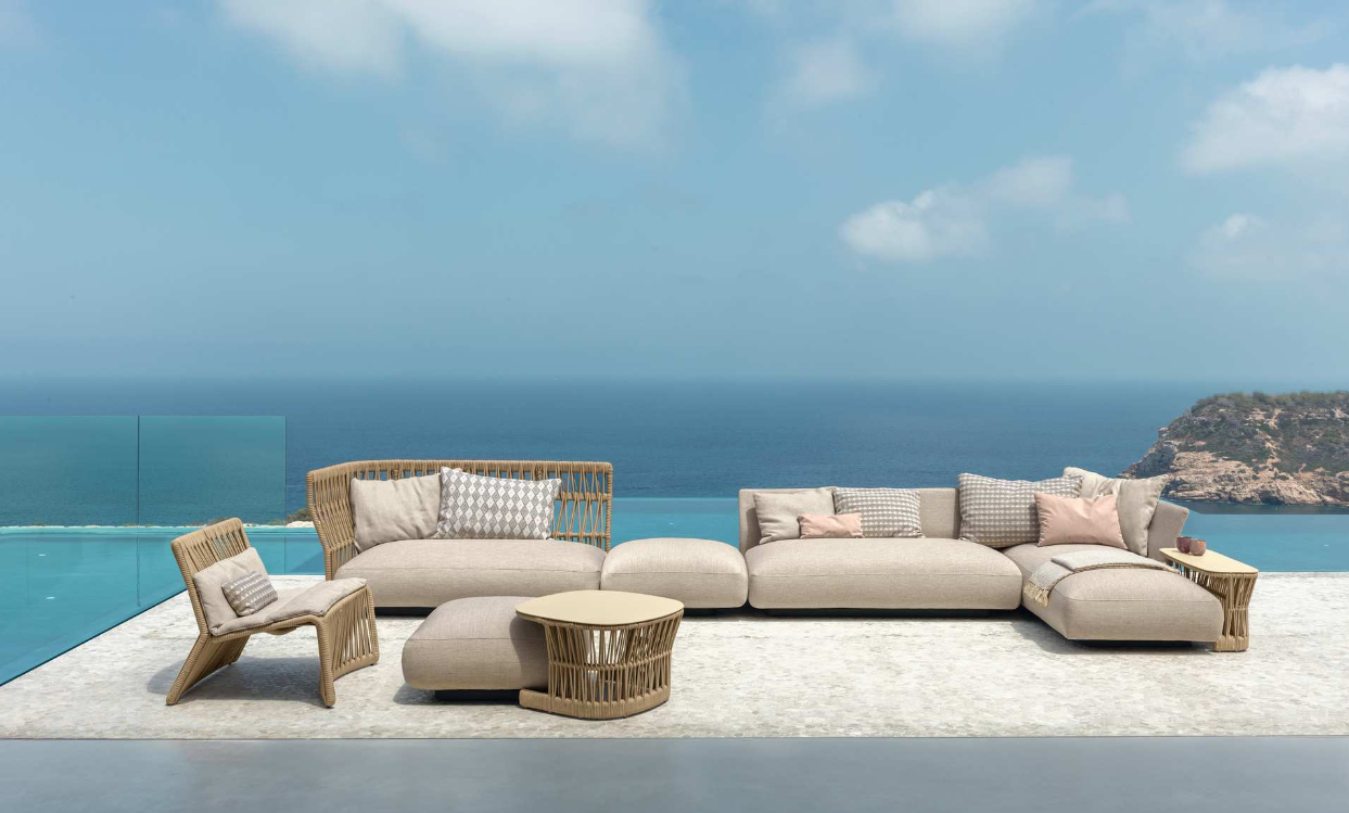 The act of creating your own composition becomes a fun game to do while thinking about your outdoor. The modules in the braided hawsers version have a metal tubular structure coated in the same colour as the cushions and the rope. In the fabric elements the structure is hidden.