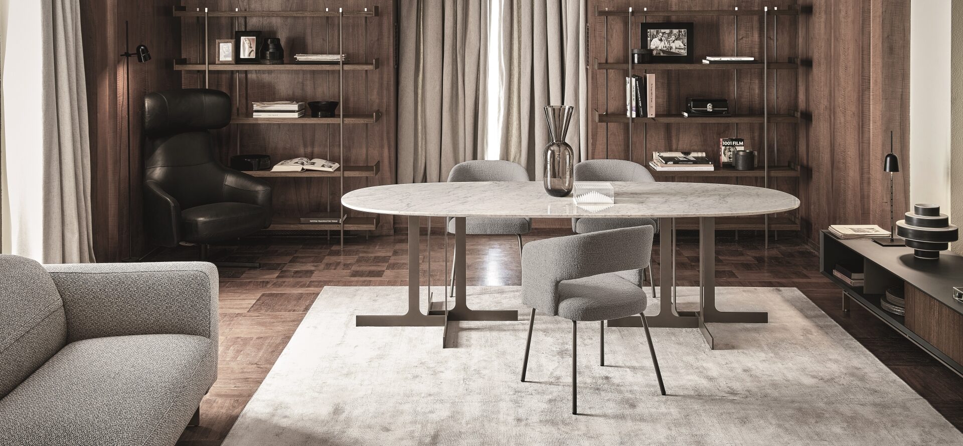 The Billie tub chair has a stripped back, sculptural design, representing an extreme simplification of the concept of a chair. Its three main elements appear to fuse together as if by magic.