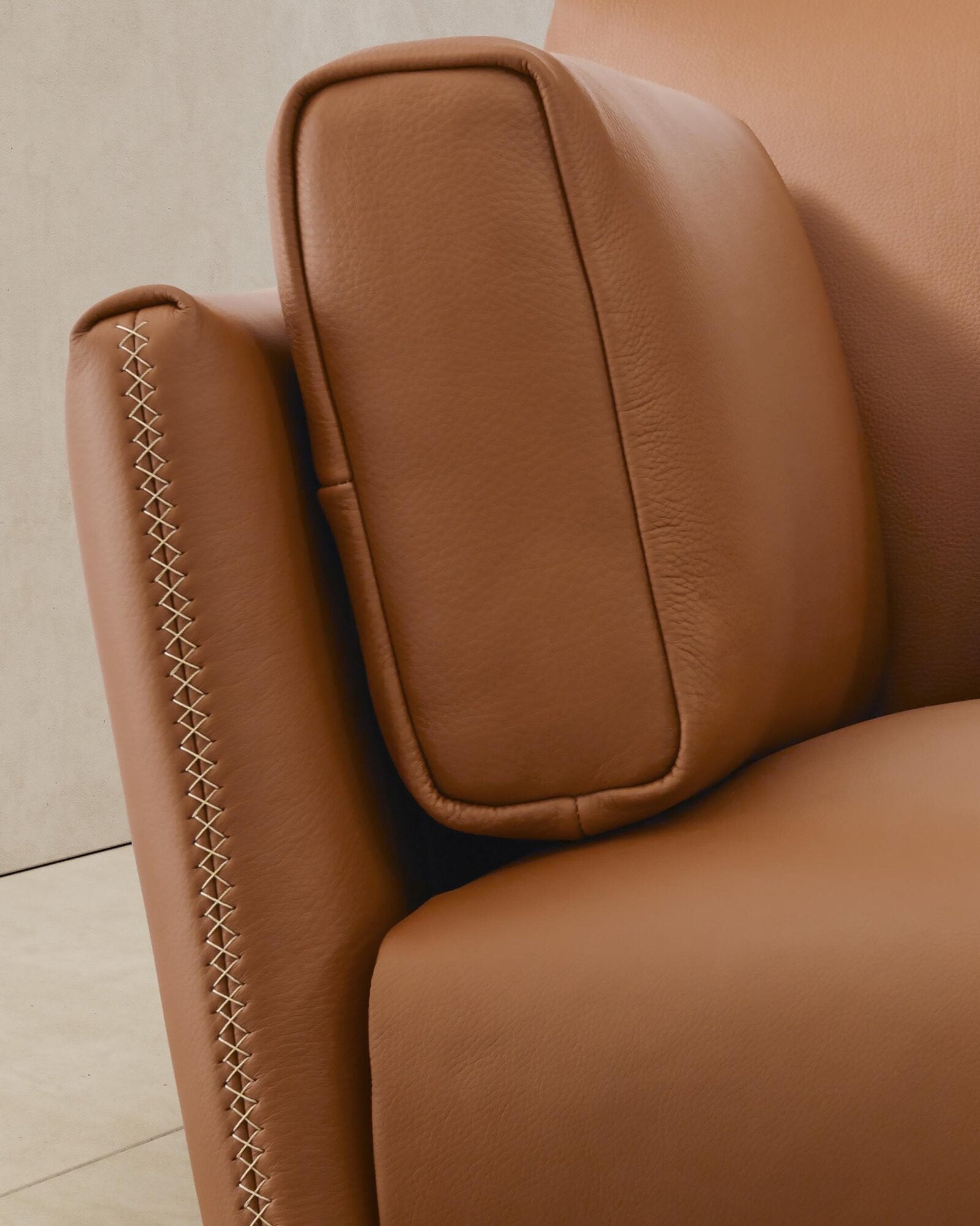 The seat and back cushions are available in a wide range of Italian leathers and fabrics.