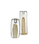 Glass cylinder with inner swirling gold flecks, candle stick holder.