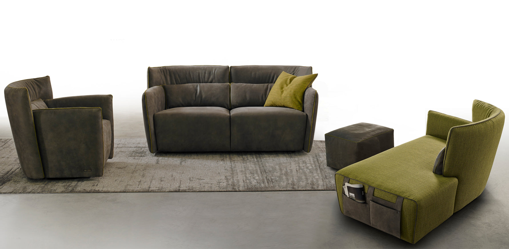 Fully upholstered bed with a youthful vibe, a modern design and customisable stitching detailing. Available in a wide range of Italian leather grades or Italian fabrics.