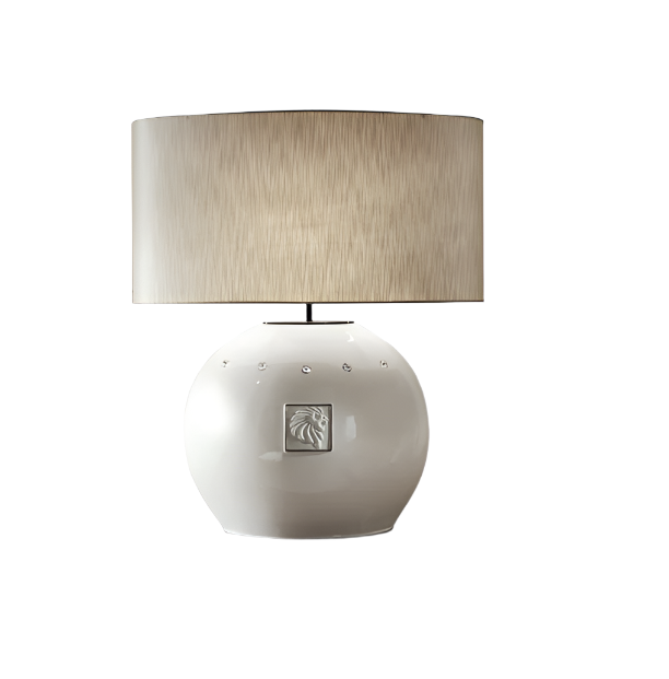 Indulge in the gorgeous Alchemy Collection, with luxurious elements such as this Ceramic table lamp, skilfully hand crafted with Swarovski crystal inserts and Lion head. Luxurious pleated beige silk shade. This piece is part of an extensive Alchemy collection, however can be purchased as a stunning one off statement piece!