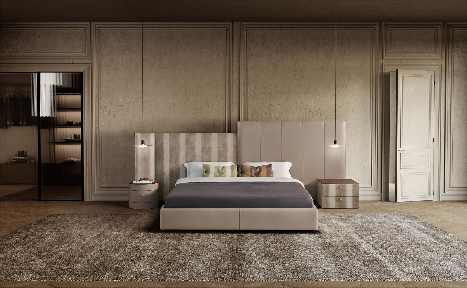 The feature of this bed is a possibility of mixing a different headboard heights, in order to design symmetrical or asymmetrical configuration.
