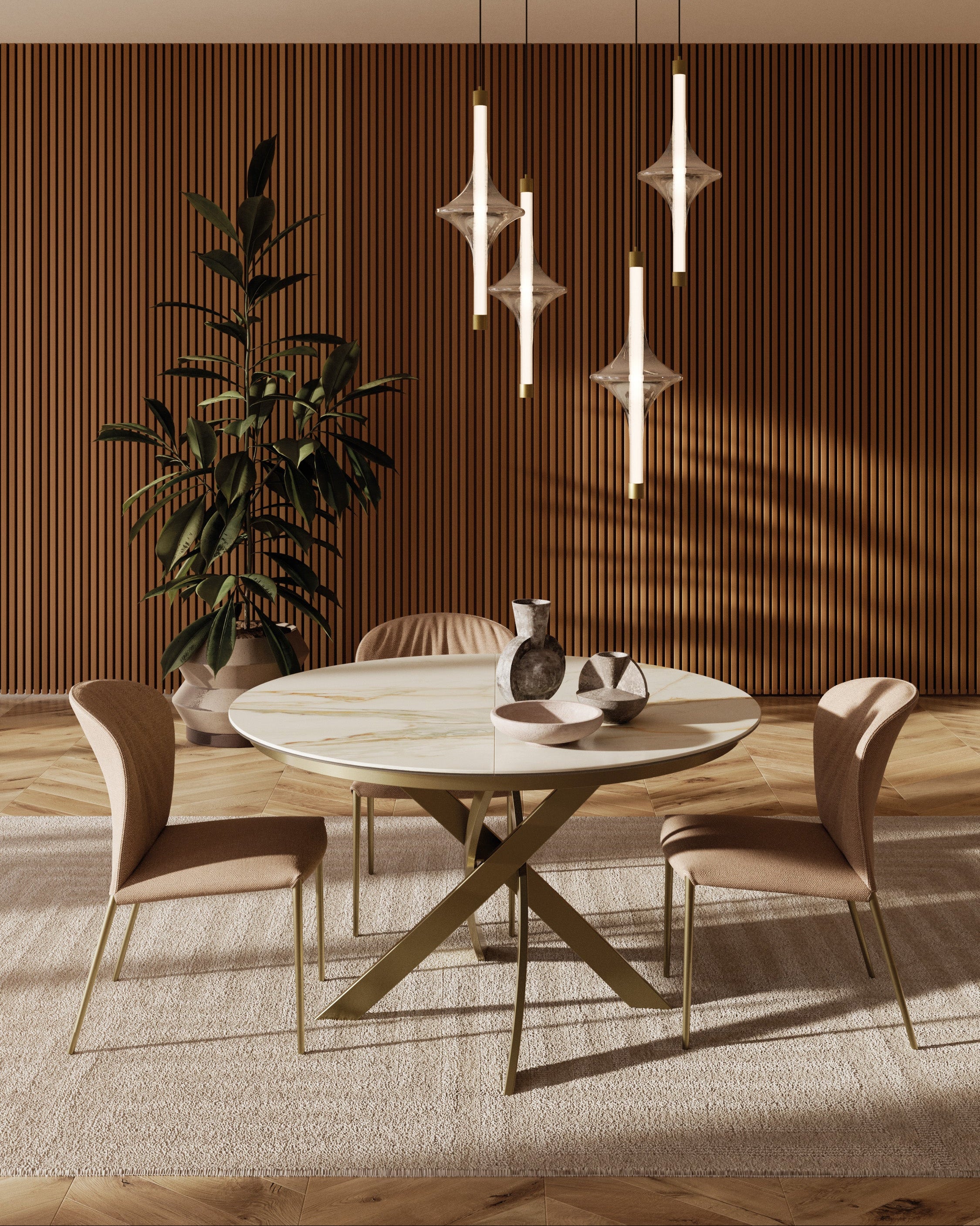 One of the most popular designs within our affordable luxury dining table collection, the Artistic round dining table is an Italian-designed contemporary dining table that combines refined aesthetics with everyday functionality. Designed in Italy, its circular form creates a balanced and inviting presence, ideal for both intimate dining spaces and modern interiors.