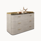 The Baku dresser features a unique, refined aesthetic that adds a touch of refined luxury to your bedroom. Each bedside table boasts premium-quality detailing with elegant edges in coated metal (available in various finishes) and sleek leather-clad curves, which make it not only functional, but also a real artisan object. The Baku range comes in a range of bedside drawers and chest of draws, all available in a variety of sizes and suitable for whatever purpose you have in mind.