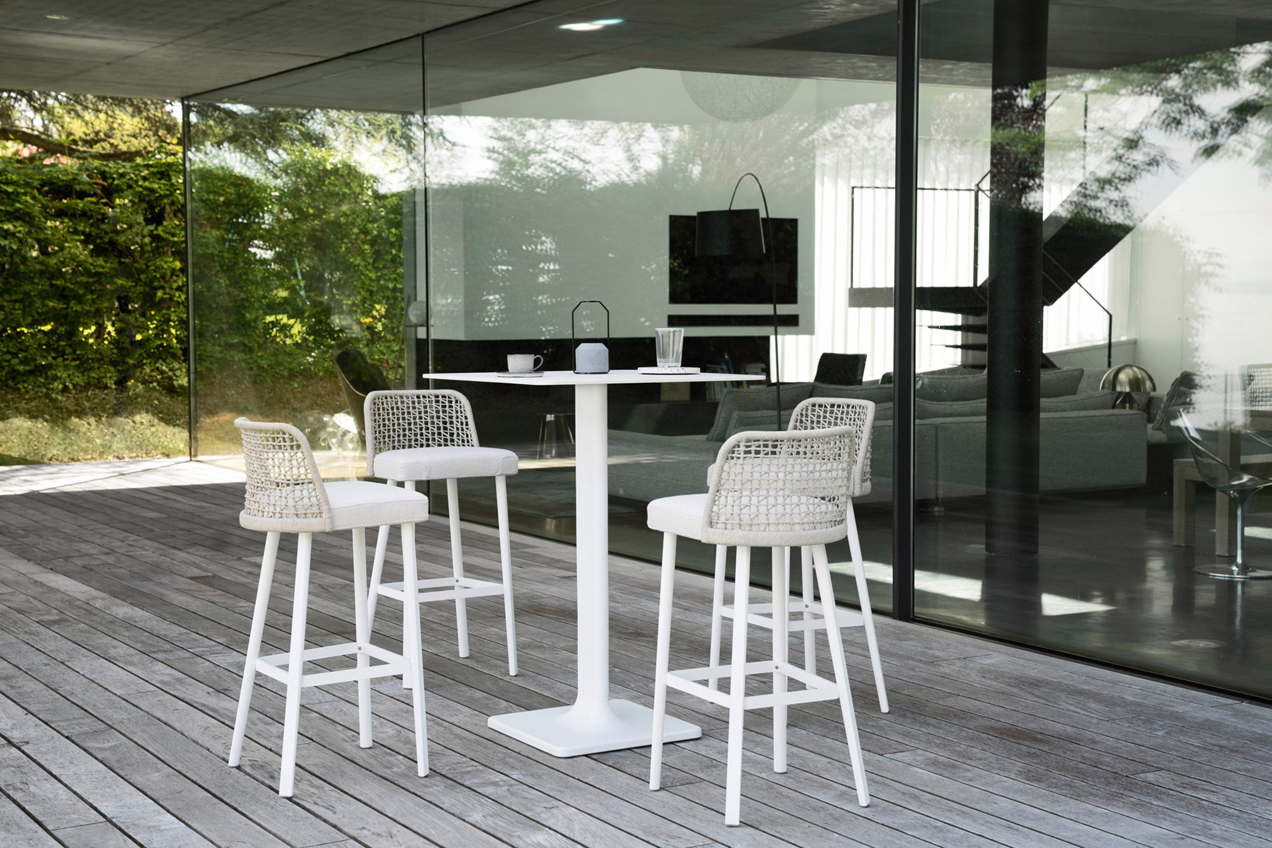 The Emma stool is characterized by the unmistakable rope weaving of the backrest, a refined detail that enhances its shape and design. It can be customized through numerous combinations of seats, legs and backs available in different finishes, to best adapt to any mood.