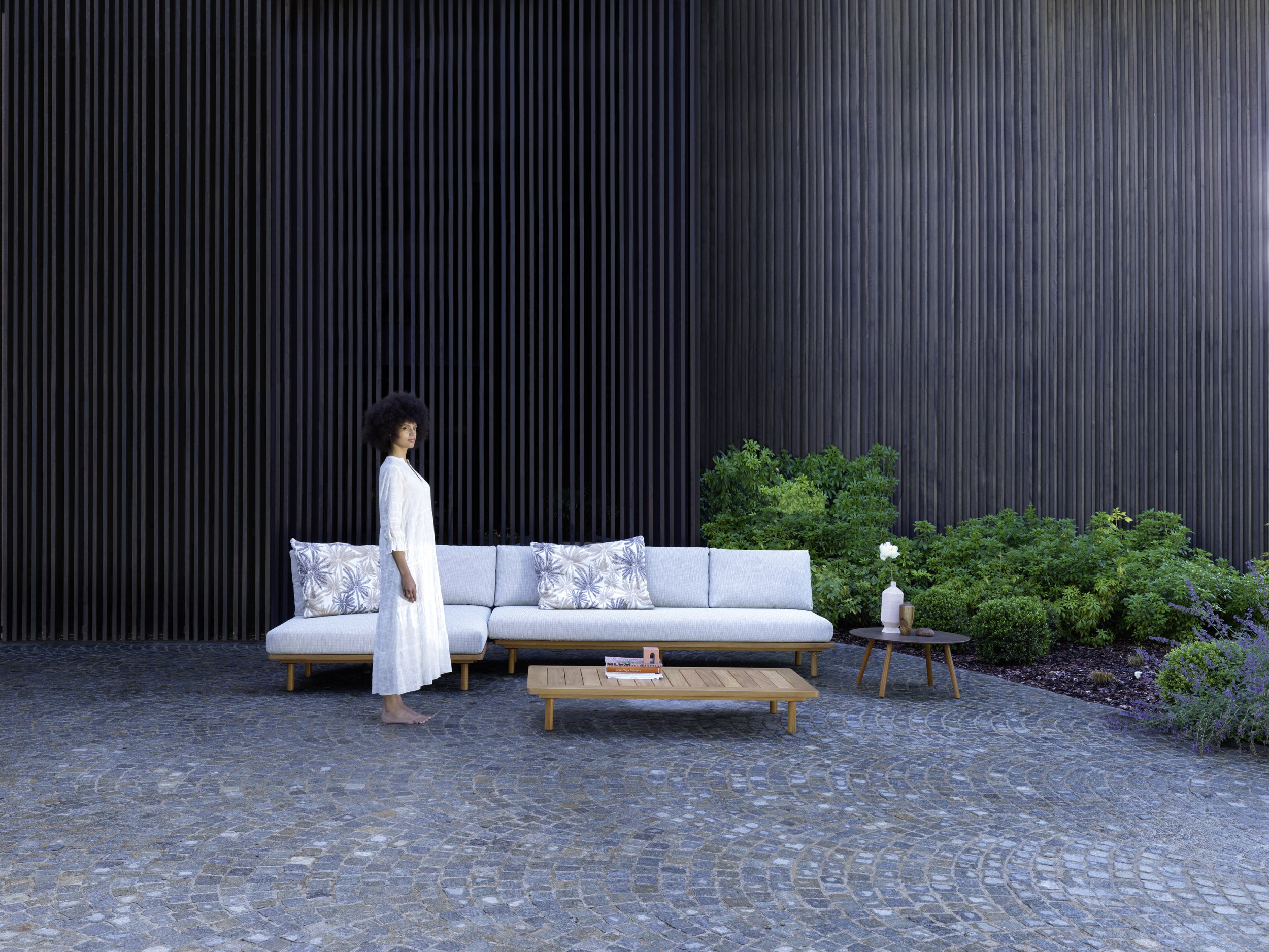 The structure is made of solid iroko wood perfect for outdoor spaces and the top is created using HPL, ceramic or iroko. The structure is weather and UV-light resistant .