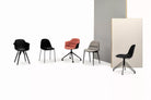 Available with a range of base options including a swivel chair, swivel castor chair, lacquered metal frame, or solid wood frame. The Mood is a versatile Italian luxury dining chair designed to elevate modern spaces while embodying accessible, affordable luxury.