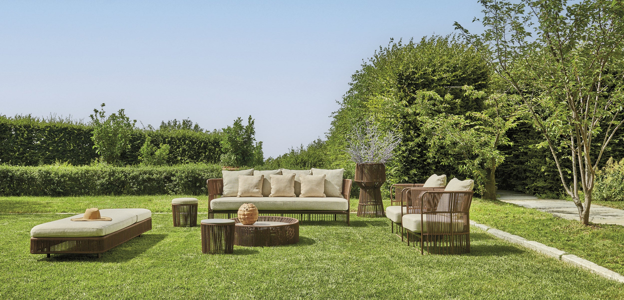 The Tibidabo coffee table consists of an aluminium frame on which an airy and linear interweaving unfolds. Lightweight and versatile, when the evening arrives, if equipped with outdoor lighting, it transforms into a lantern that delicately illuminates the environment. Perfect for creating the right atmosphere in gardens, terraces, patios and outdoor areas of residential or contract spaces.